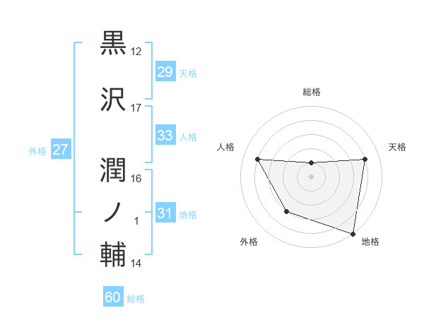 黒沢 潤ノ輔さんの総格は60画の1点!