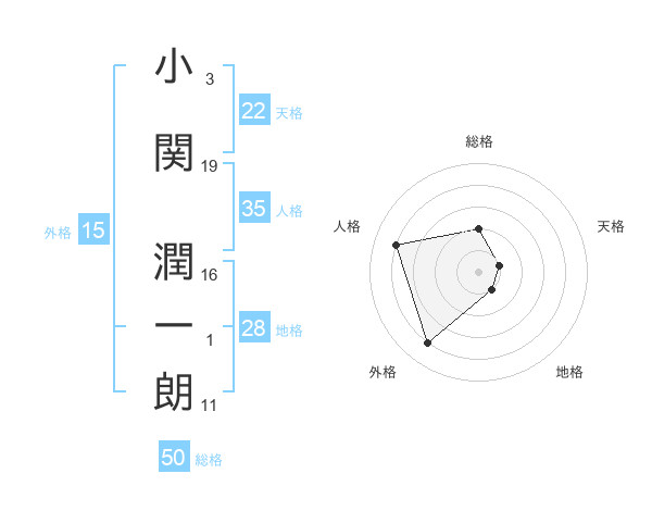 小関 潤一朗さんを姓名の画数から五運を鑑定
