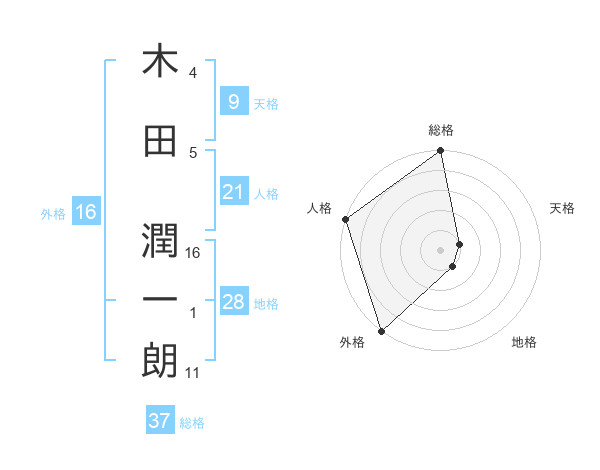 木田 潤一朗さんを姓名の画数から五運を鑑定