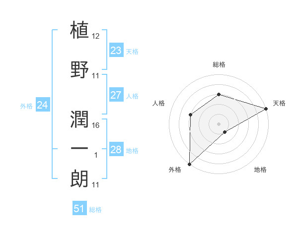 植野 潤一朗さんを姓名の画数から五運を鑑定