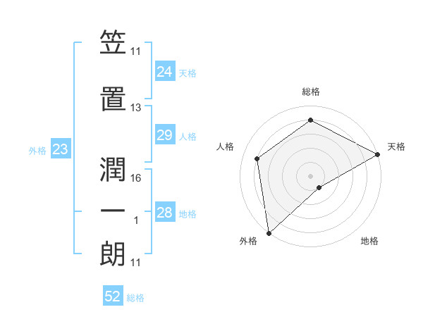 笠置 潤一朗さんを姓名の画数から五運を鑑定