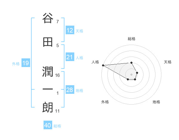 谷田 潤一朗さんの外格は19画の1点!