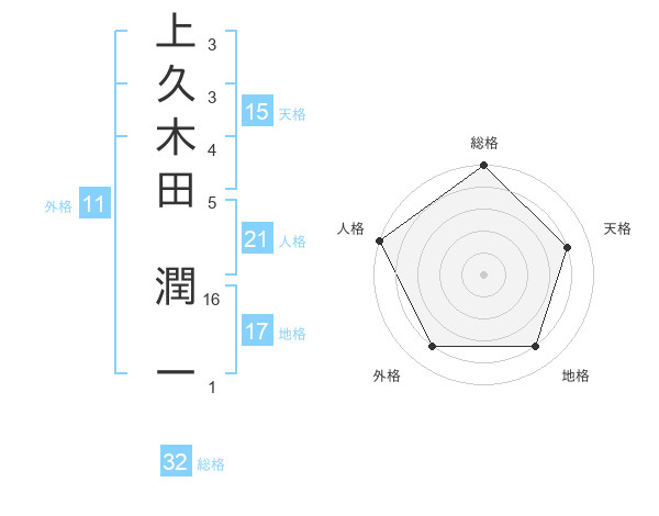 上久木田 潤一さんの地格は17画の4点!