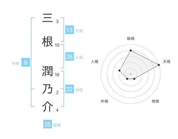三根 潤乃介さんを姓名の画数から五運を鑑定