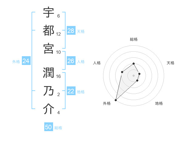 宇都宮 潤乃介さんを姓名の画数から五運を鑑定