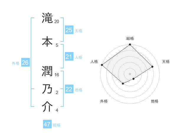 滝本 潤乃介さんの総格は47画の5点!