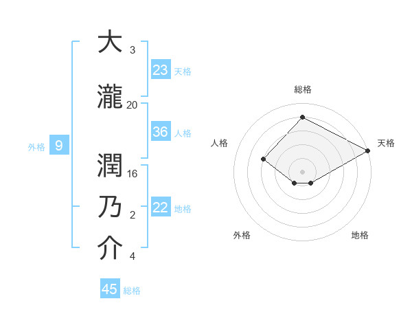大瀧 潤乃介さんの天格は23画の5点!