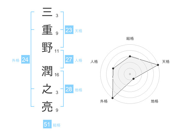 三重野 潤之亮さんを姓名の画数から五運を鑑定