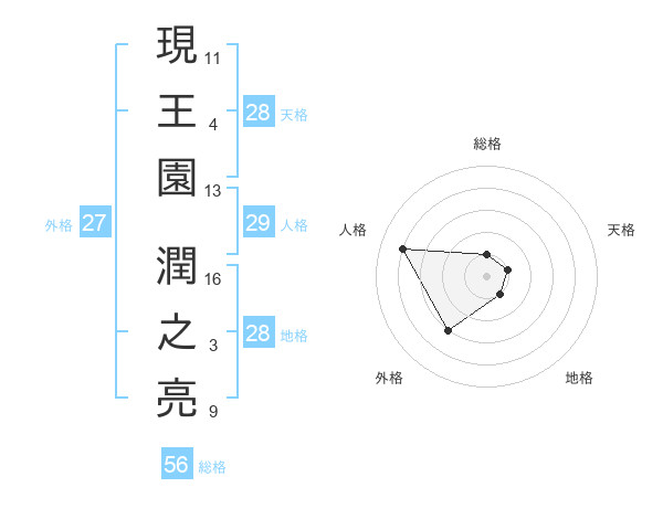 現王園 潤之亮さんの天格は28画の1点!