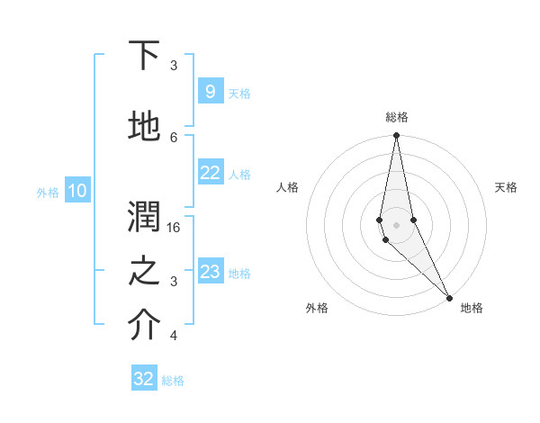 下地 潤之介さんを姓名の画数から五運を鑑定