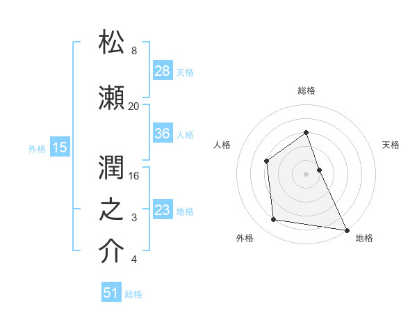 松瀬 潤之介さんを姓名の画数から五運を鑑定