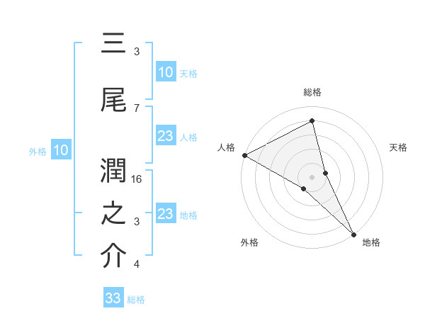三尾 潤之介さんの総格は33画の4点!
