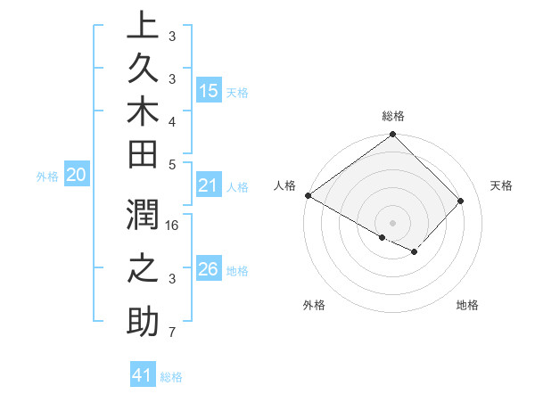 上久木田 潤之助さんを姓名の画数から五運を鑑定