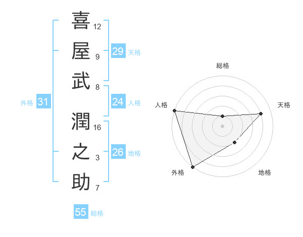 喜屋武 潤之助さんを姓名の画数から五運を鑑定