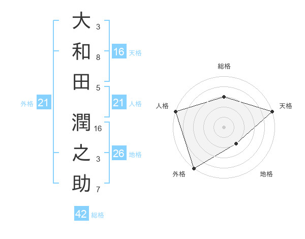 大和田 潤之助さんを姓名の画数から五運を鑑定
