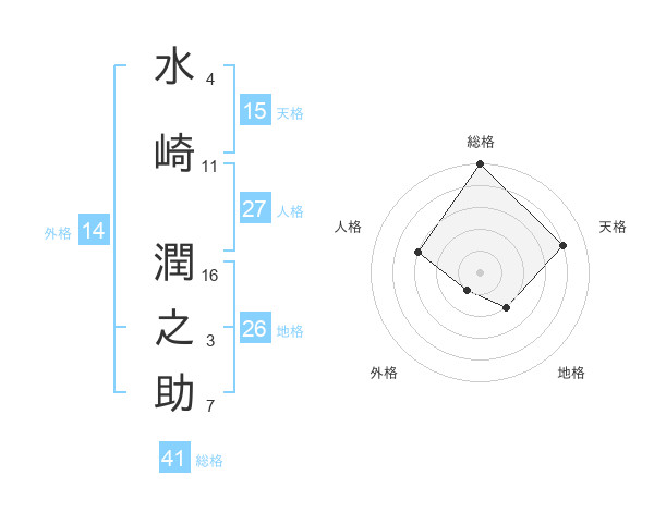 水崎 潤之助さんを姓名の画数から五運を鑑定