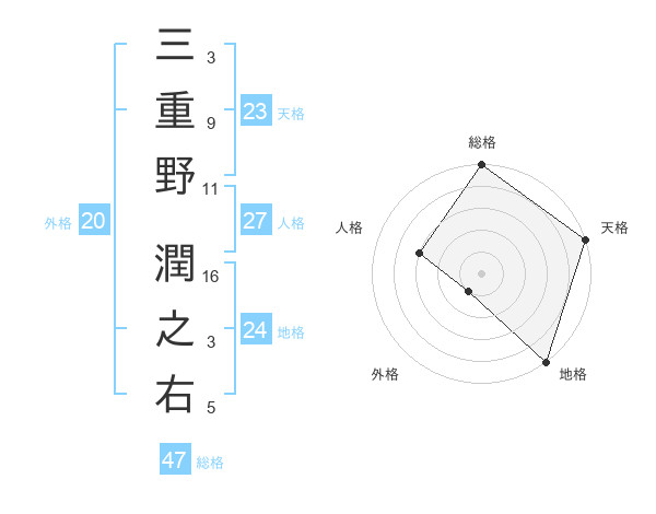 三重野 潤之右さんを姓名の画数から五運を鑑定