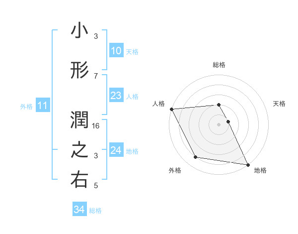 小形 潤之右さんの総格は34画の2点!