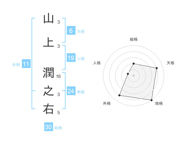 山上 潤之右さんの総格は30画の2点!