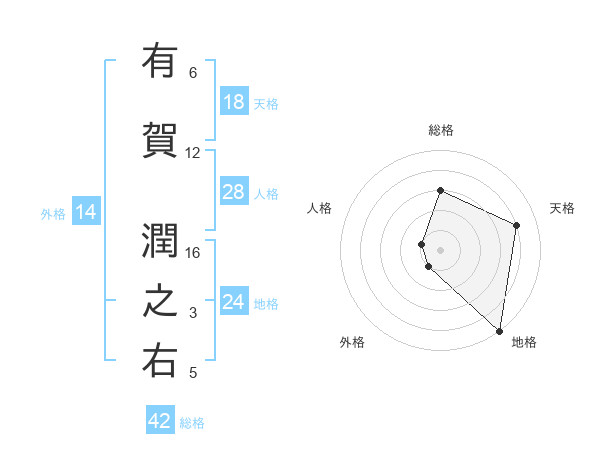 有賀 潤之右さんを姓名の画数から五運を鑑定