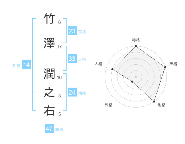 竹澤 潤之右さんの総格は47画の5点!