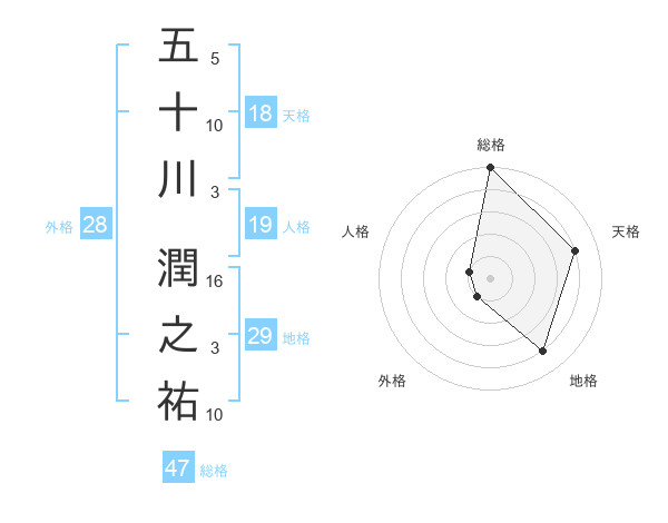 五十川 潤之祐さんの総格は47画の5点!