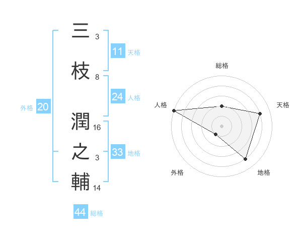 三枝 潤之輔さんを姓名の画数から五運を鑑定