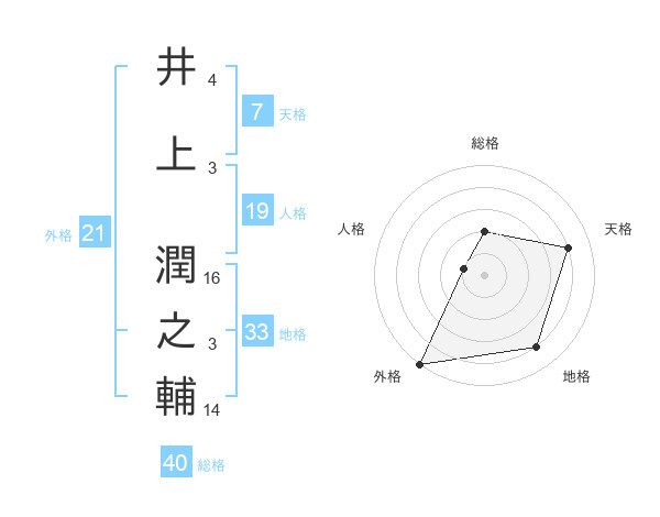 井上 潤之輔さんの天格は7画の4点!