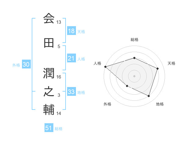 会田 潤之輔さんの総格は51画の3点!
