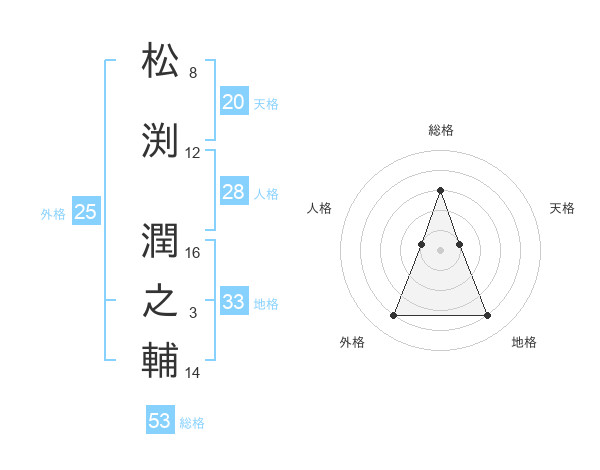 松渕 潤之輔さんを姓名の画数から五運を鑑定