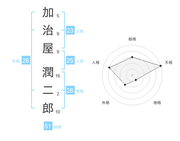 加治屋 潤二郎さんを姓名の画数から五運を鑑定