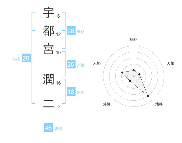宇都宮 潤二さんを姓名の画数から五運を鑑定