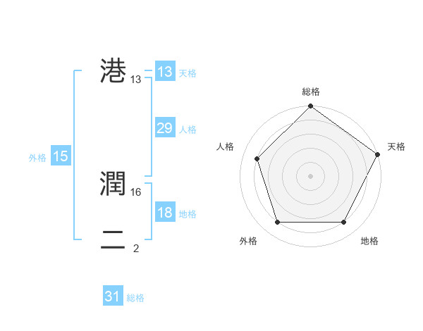 港 潤二さんの天格は13画の5点!
