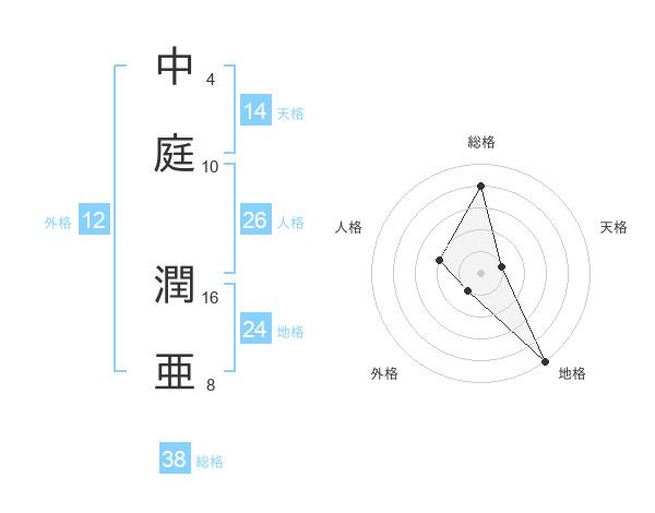 中庭 潤亜さんを姓名の画数から五運を鑑定