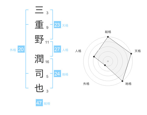 三重野 潤司也さんの総格は47画の5点!