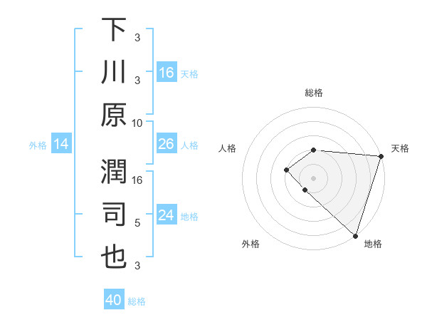 下川原 潤司也さんを姓名の画数から五運を鑑定