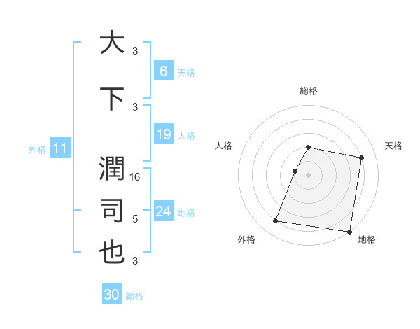 大下 潤司也さんを姓名の画数から五運を鑑定