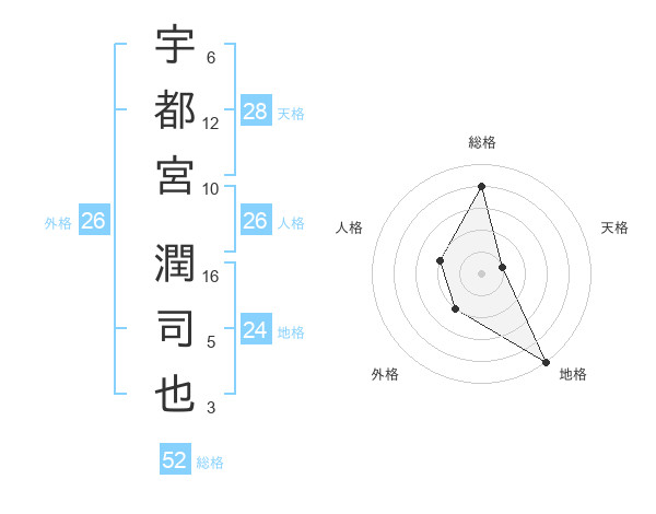 宇都宮 潤司也さんを姓名の画数から五運を鑑定