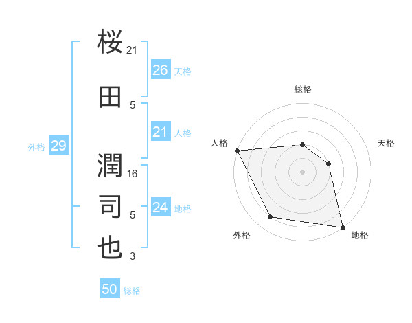 桜田 潤司也さんを姓名の画数から五運を鑑定