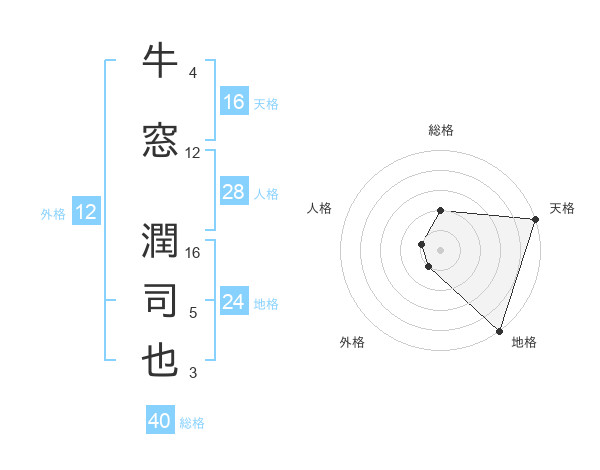 牛窓 潤司也さんの天格は16画の5点!