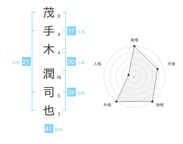 茂手木 潤司也さんを姓名の画数から五運を鑑定