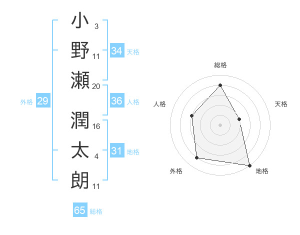 小野瀬 潤太朗さんを姓名の画数から五運を鑑定