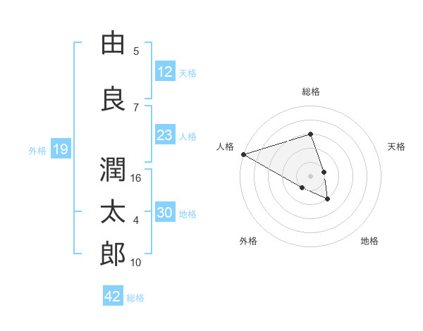 由良 潤太郎さんを姓名の画数から五運を鑑定