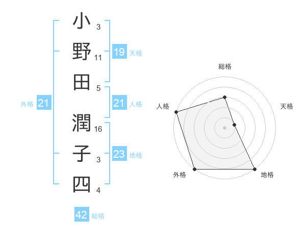 小野田 潤子四さんを姓名の画数から五運を鑑定