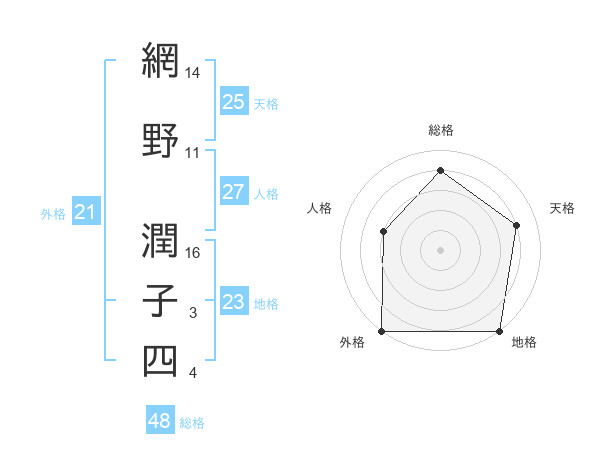 網野 潤子四さんを姓名の画数から五運を鑑定
