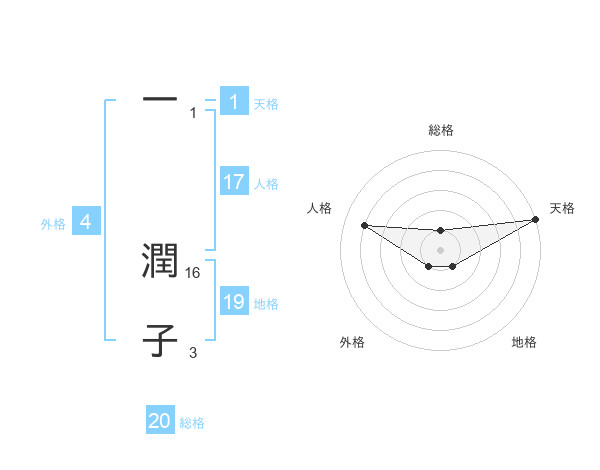 一 潤子さんの総格は20画の1点!