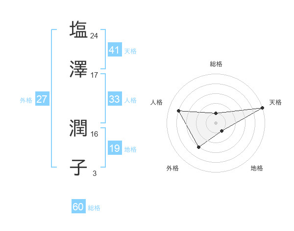 塩澤 潤子さんを姓名の画数から五運を鑑定