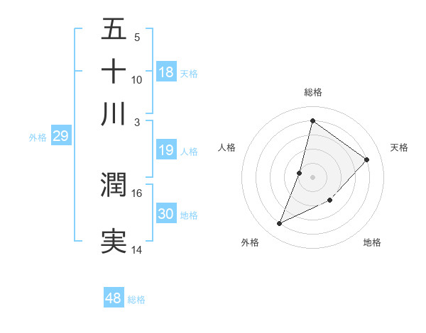 五十川 潤実さんを姓名の画数から五運を鑑定