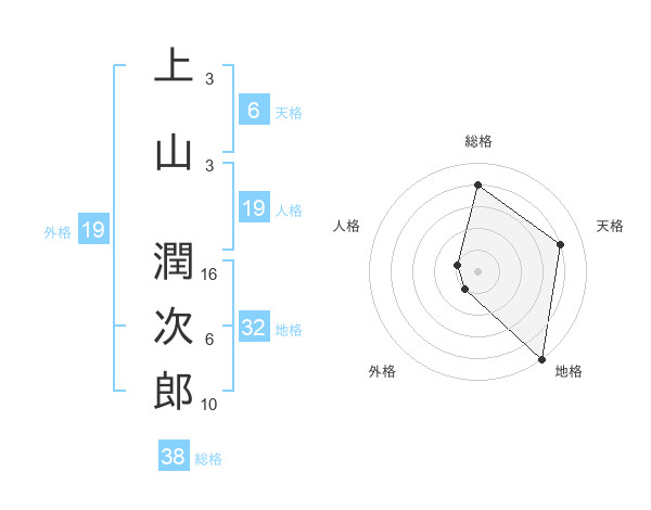 上山 潤次郎さんの総格は38画の4点!