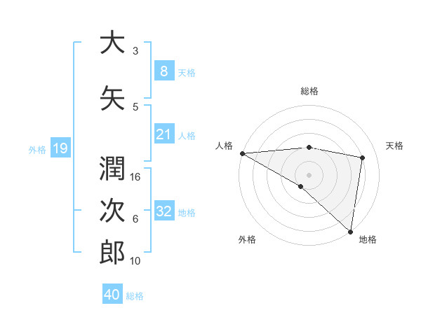 大矢 潤次郎さんを姓名の画数から五運を鑑定